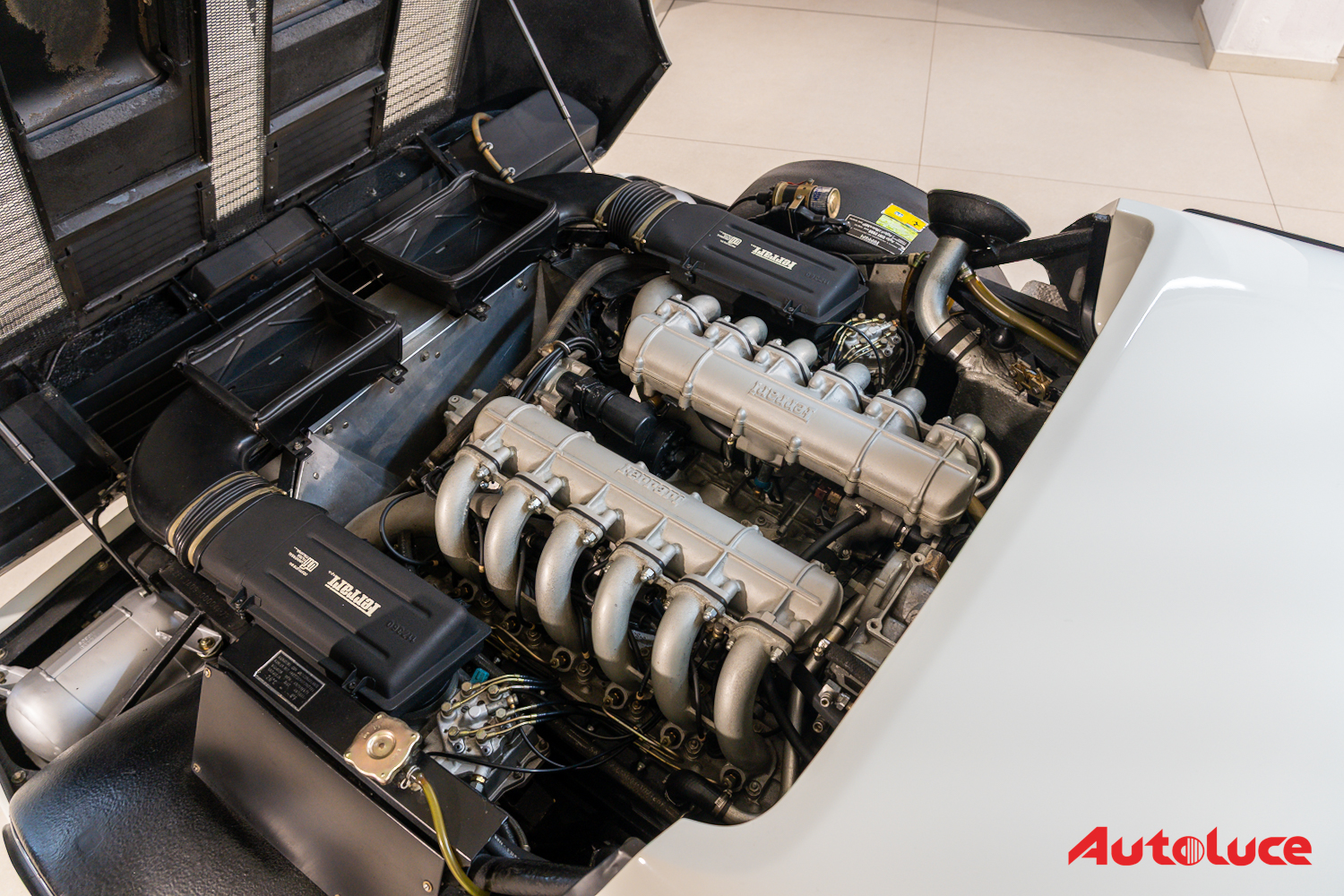 Sulla 512 BBi, l’iniezione meccanica Bosch K-Jetronic sostituì la batteria di quattro carburatori Weber a triplo corpo della 512 BB. Nonostante la meccanica fosse pressoché identica, il 12 cilindri Boxer perse una ventina di cavalli e 200 giri al minuto: 6600 invece dei 6800 raggiunti dalla BB. La velocità massima rimase attorno ai 280 km/h.